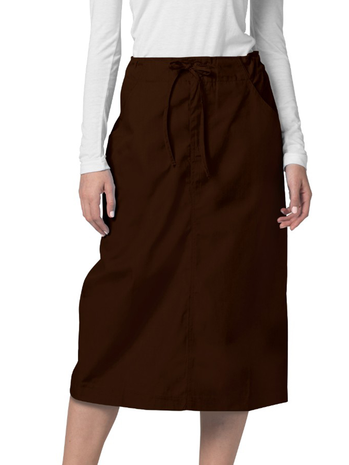 Sassy and full of attitude, this straight skirt features a front zipper closure, two side pockets, and a back slit. Its waistline is defined by a stitched yoke, shape-defining back darts, and a drawstring that ties in front and laces through the back. Center back length: 29".
