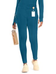 This high rise knit legging is made of a stretchy nylon and spandex blend that is comfortable, durable, and won't stretch out. Inspired by workout pants, the crossover waistband design is reinforced with inside elastic so the legging stays in place. There are four pockets for organized storage: two hip pockets (right with pen pocket) and one mesh pocket below the center back waistband. Tonal mesh overlay on waistband and shaped leg panels. Front leg seams with coverstitching for an athletic look. Bonded hems for a clean finish. Contemporary Slim fit. Fitted leg, 9 ½" opening. Inseam: 28 ½". Featuring PROTX2 technology with antimicrobial and moisture wicking properties.