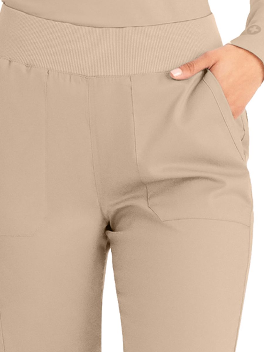 Mid-rise rib-knit elastic waist with an internal drawstring for a clean look with a secure fit