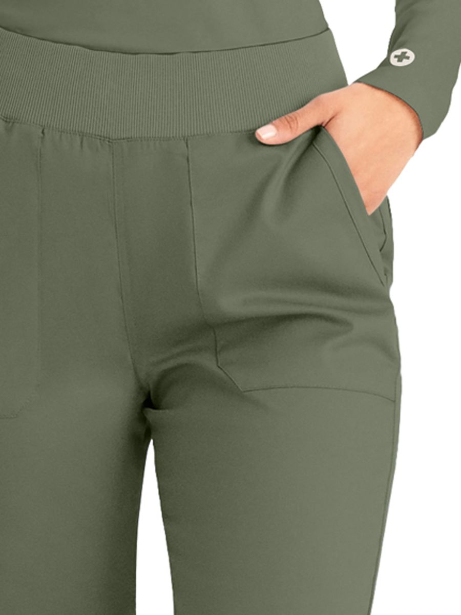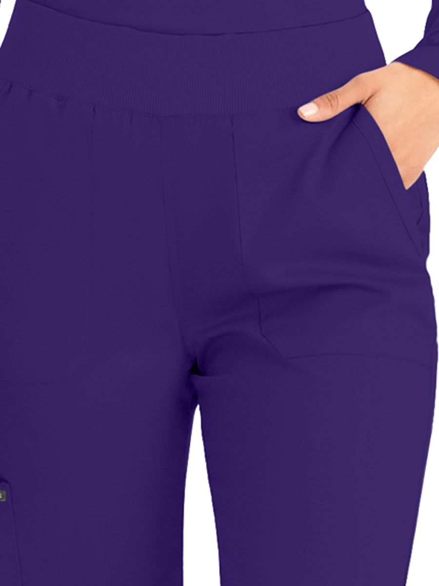 A Modern Fit , mid-rise, straight leg pant with a knit waistband and an internal drawstring provides comfort and functionality. With 2 Cargo pockets with a hidden elastic loop to keep accessories organized, 2 front pockets with one having and an additional 2 back pockets to keep all essential items close at hand. Regular Inseam: 31", Petite: 28.5", Tall: 33"