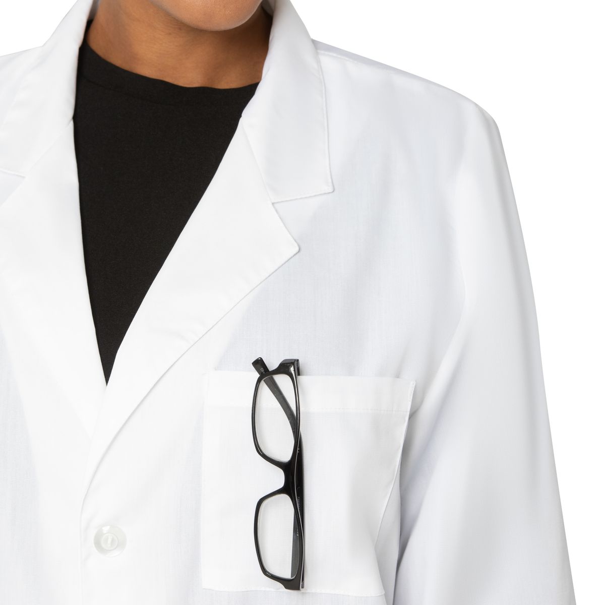 Functional Storage: This mid-length coat features 3 total pockets, including 1 chest pocket and 2 patch pockets for all your medical accessories