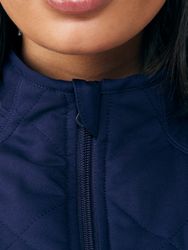 Stay cozy and stylish in this quilted zip-front jacket, designed for a loose, sporty, and contemporary fit. The drop shoulders, knit cuffs, and ribbed bottom band offer enhanced mobility, making it perfect for your active day. Thoughtful details include a hidden cell phone chest pocket, two spacious front pockets, a bungee loop for your badge, and a convenient watch vent on the left sleeve for effortless time checks without the need to roll up your sleeve.