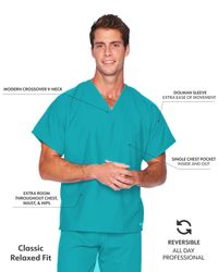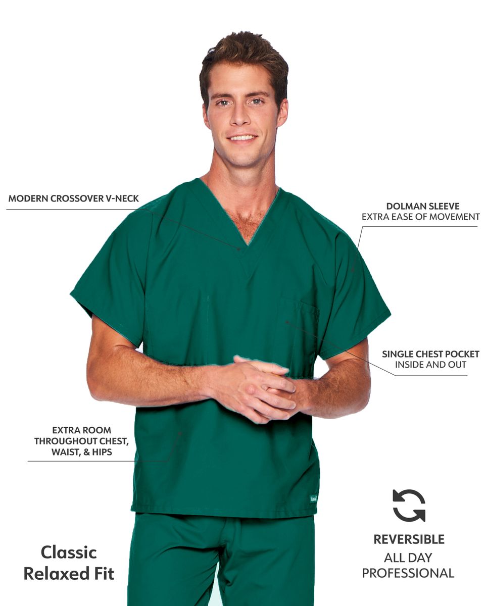 We design quality medical scrubs and medical uniforms with universal appeal. Comfortable and functional, this V-neck scrub top features a generous unisex fit complemented by dolman sleeves for added freedom of movement and all-day wearability. A reversible silhouette features one interior and one exterior breast pocket, ensuring your medical essentials are always within easy reach. Whether it's Landau scrubs for men or scrubs for women, we're known for producing scrubs that work as hard as you do!