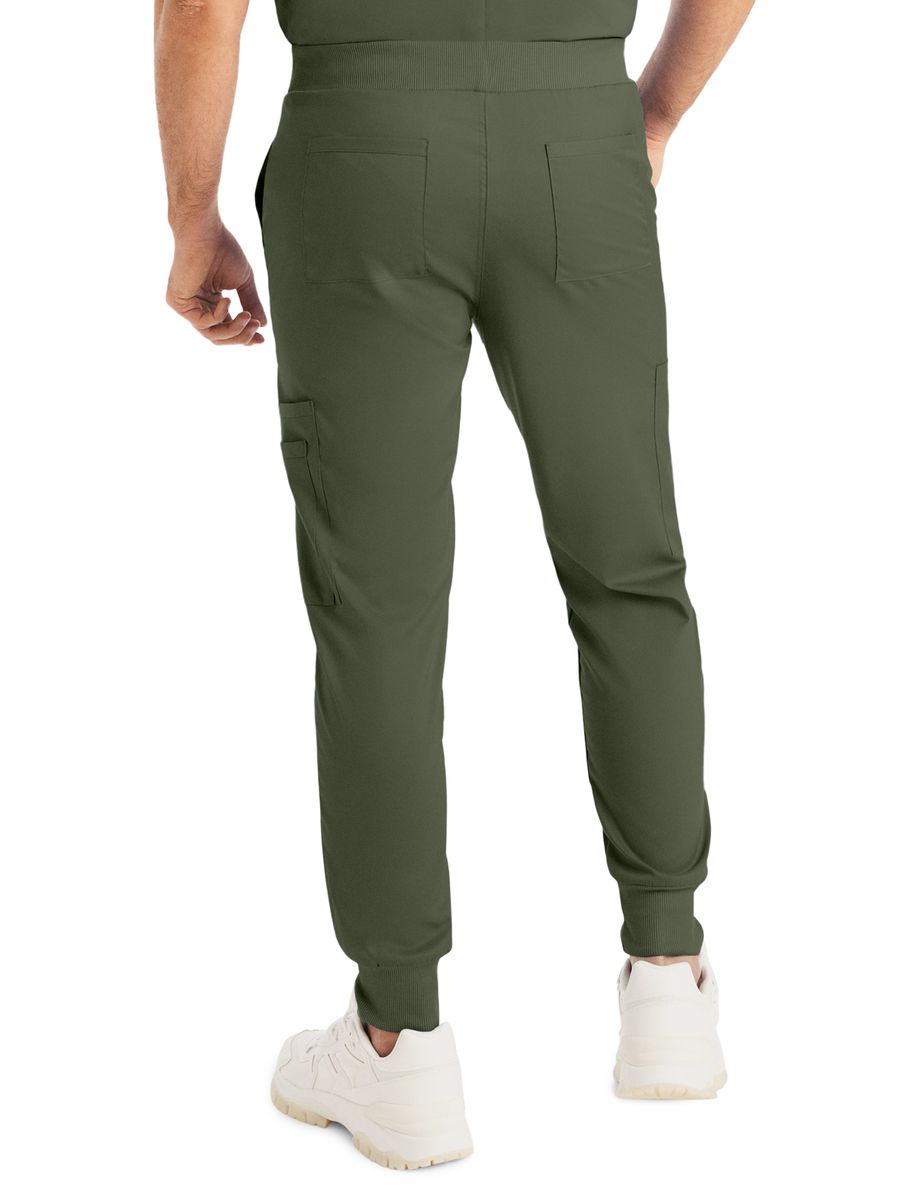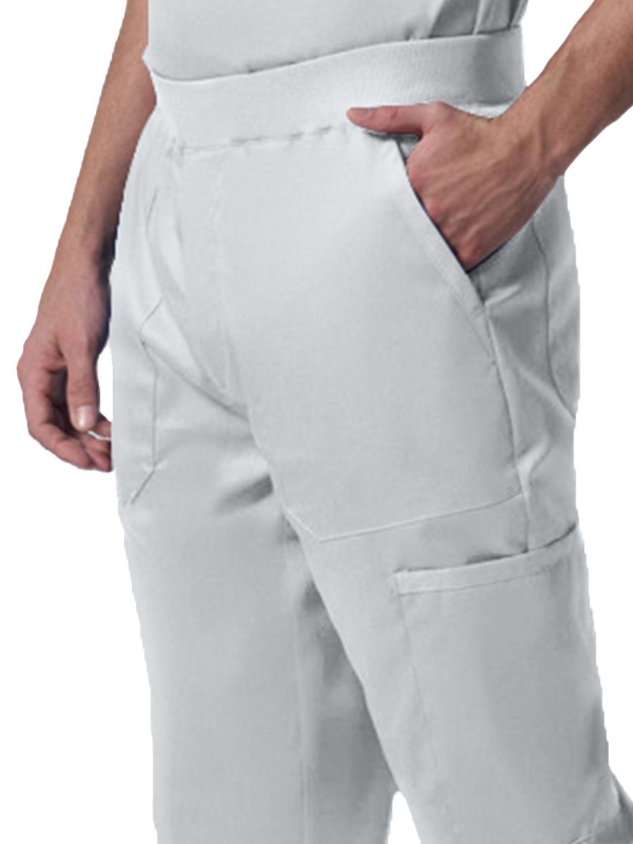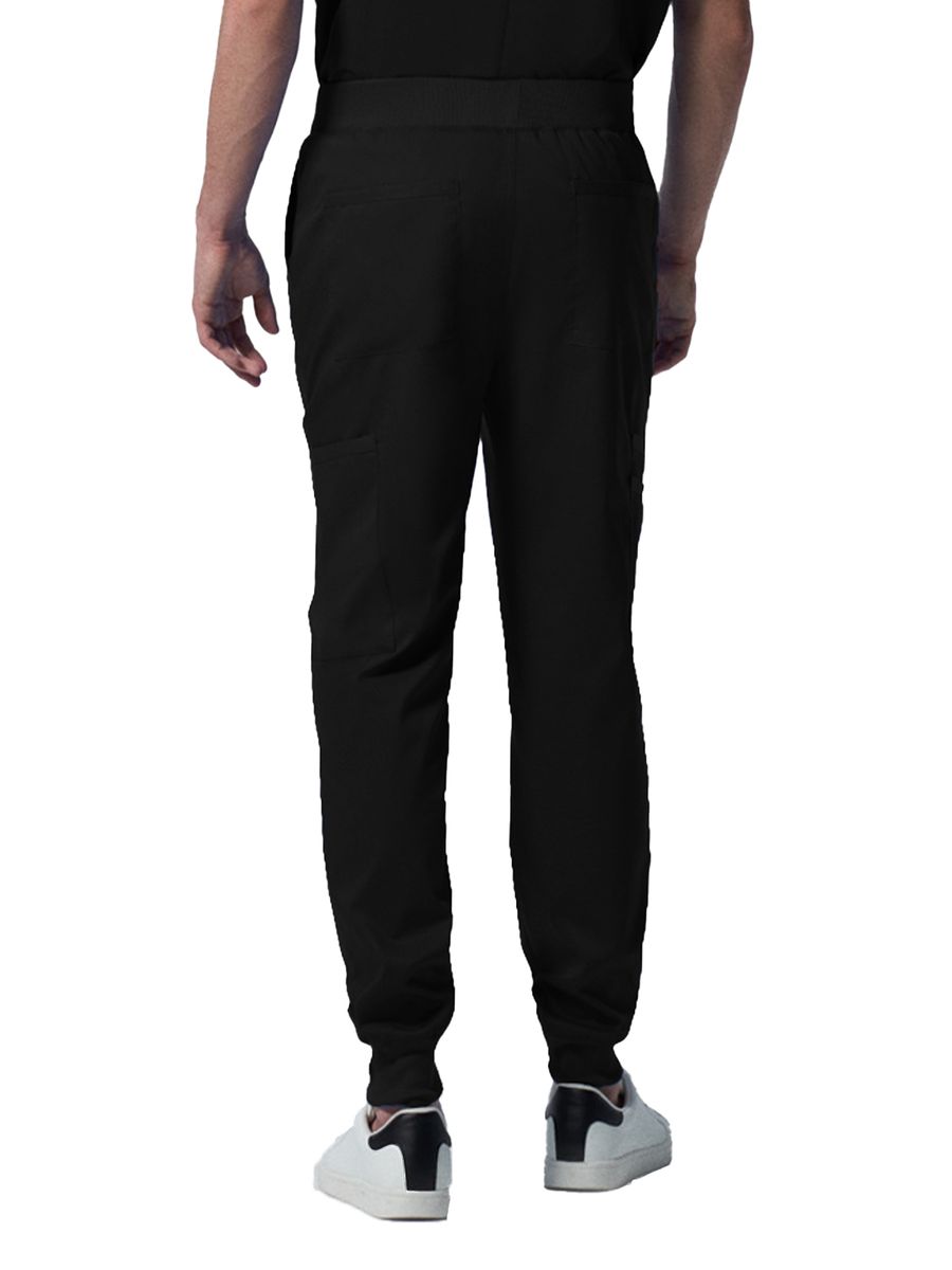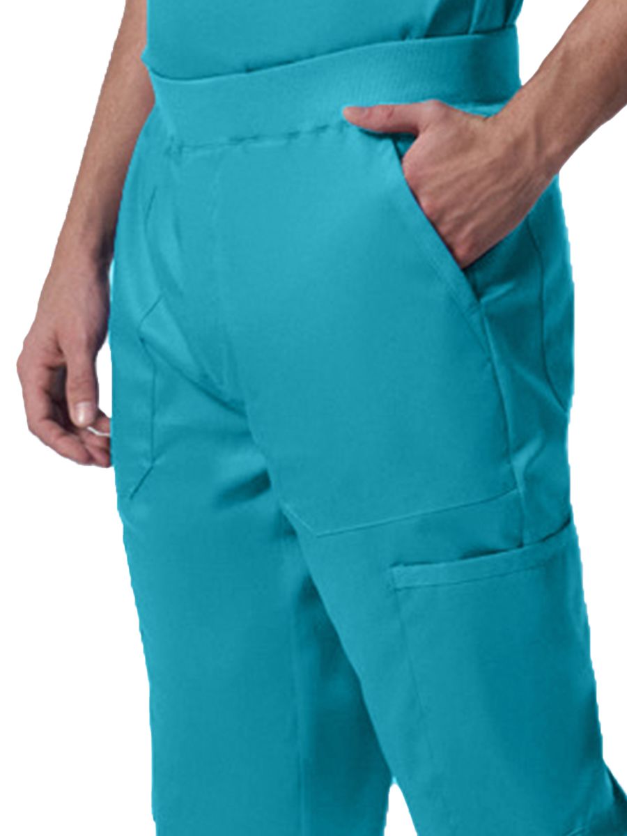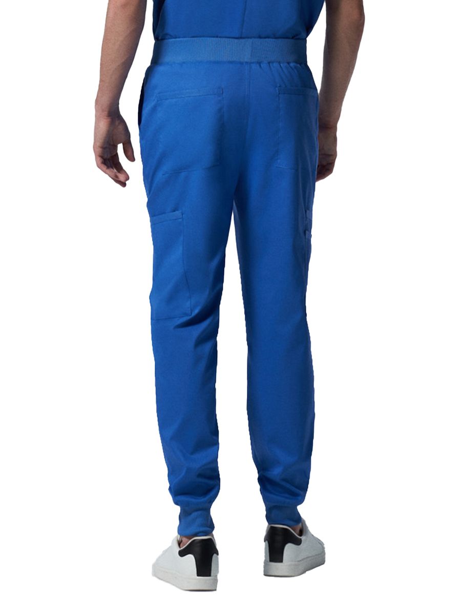 Upgrade your workwear with these men's fit jogger scrub pants, designed for comfort and practicality. The modern, tapered fit flatters your shape while allowing for unrestricted movement, and the 2-way stretch fabric ensures all-day comfort. Featuring a clean, mid-rise rib-knit elastic waist with an internal drawstring and rib-knit leg cuffs, these pants offer a secure fit and a polished look. With 7 pockets, including 3 cargo pockets and a convenient bungee loop for your ID badge, you'll have ample storage for all your essentials. These fade-resistant and wrinkle-resistant pants are built to last, making them the perfect addition to your work wardrobe.