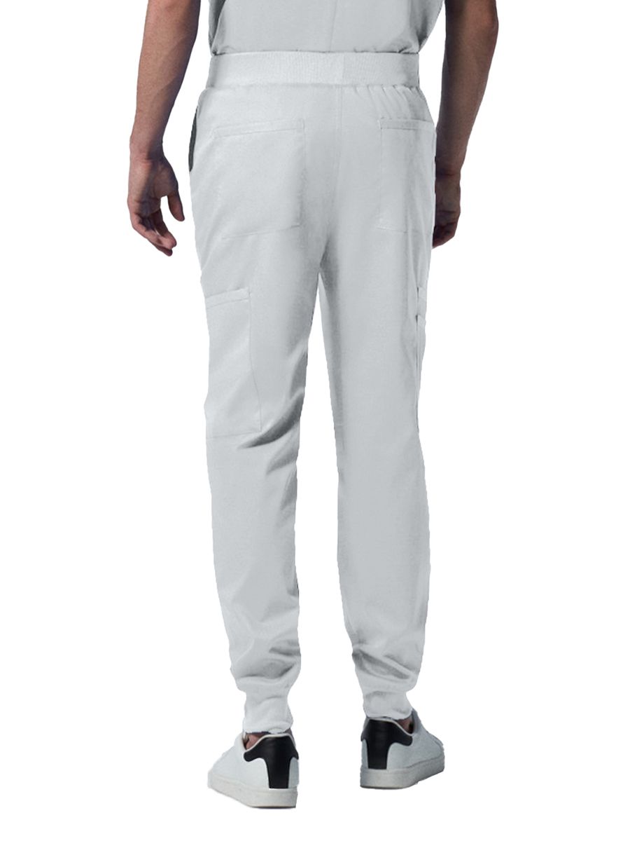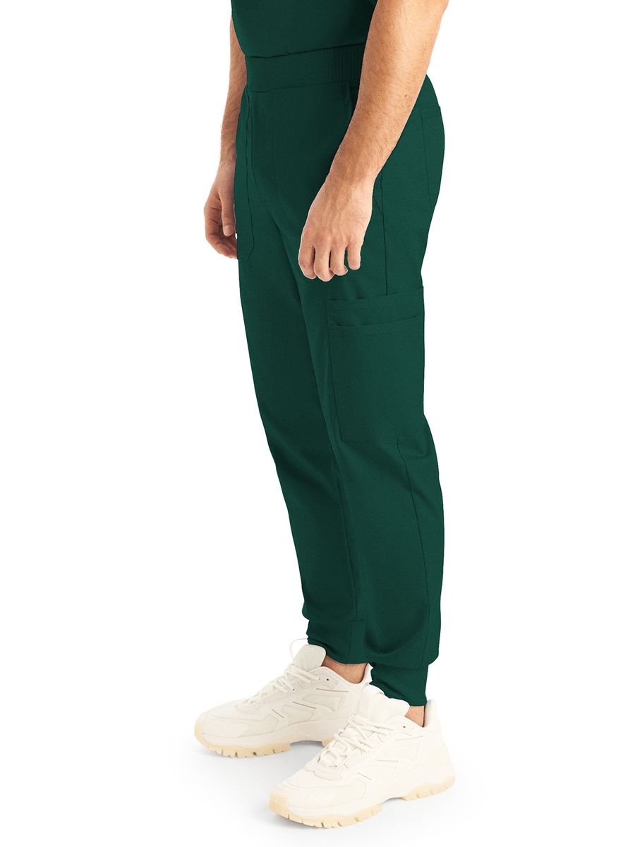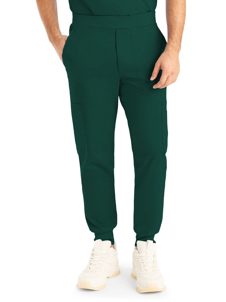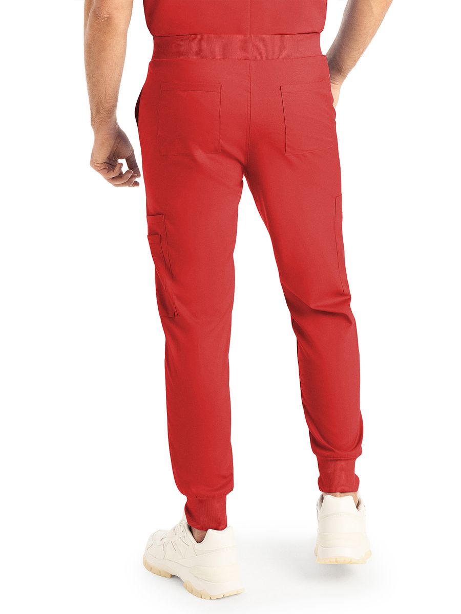 Upgrade your workwear with these men's fit jogger scrub pants, designed for comfort and practicality. The modern, tapered fit flatters your shape while allowing for unrestricted movement, and the 2-way stretch fabric ensures all-day comfort. Featuring a clean, mid-rise rib-knit elastic waist with an internal drawstring and rib-knit leg cuffs, these pants offer a secure fit and a polished look. With 7 pockets, including 3 cargo pockets and a convenient bungee loop for your ID badge, you'll have ample storage for all your essentials. These fade-resistant and wrinkle-resistant pants are built to last, making them the perfect addition to your work wardrobe.