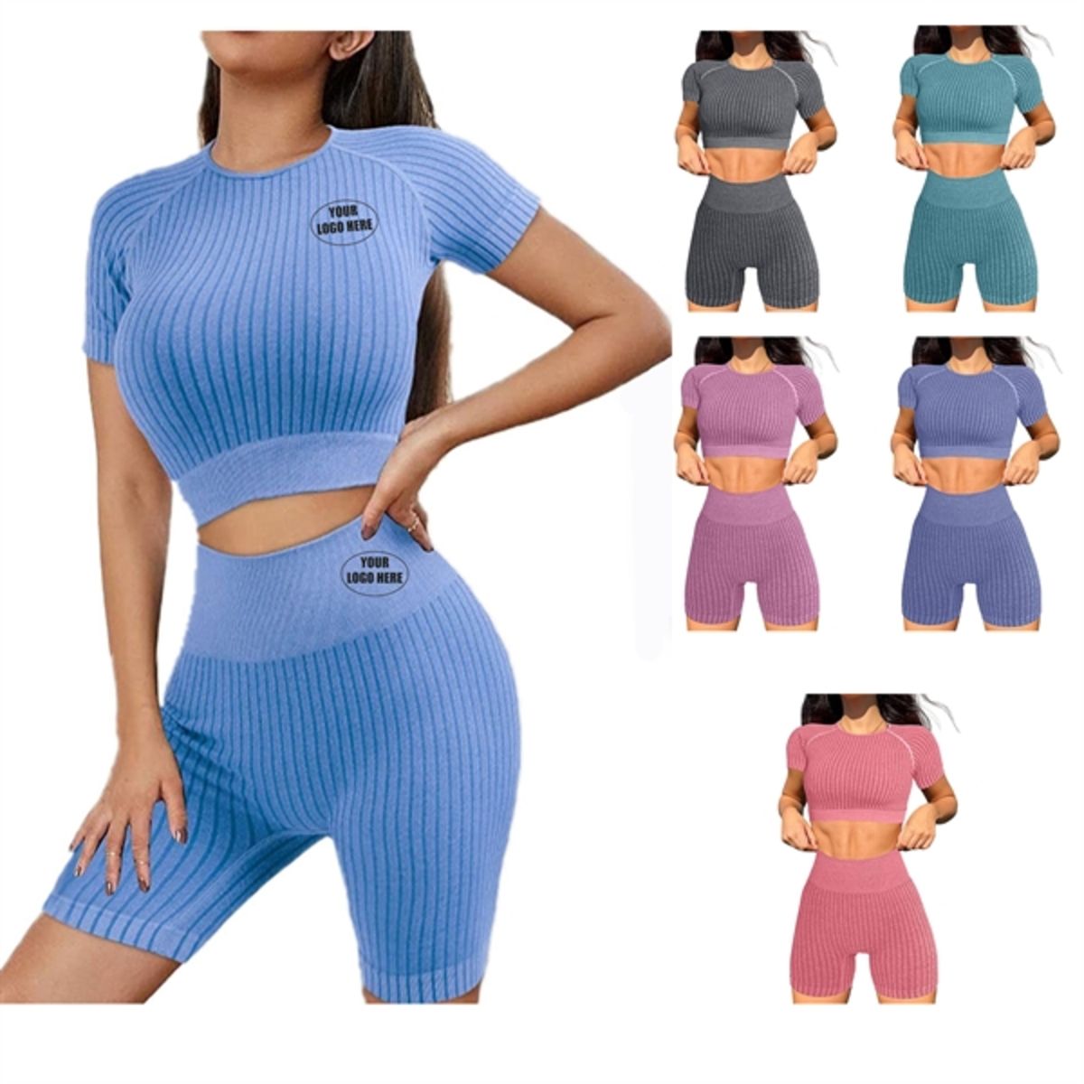 Made of nylon and spandex, this set is absorbent, breathable, easy to dry and striped all over the surface to make the body line look more beautiful and highlight your figure, this product is suitable for all kinds of sports, fitness, yoga. Rush service and Unprinting service is acceptable. c