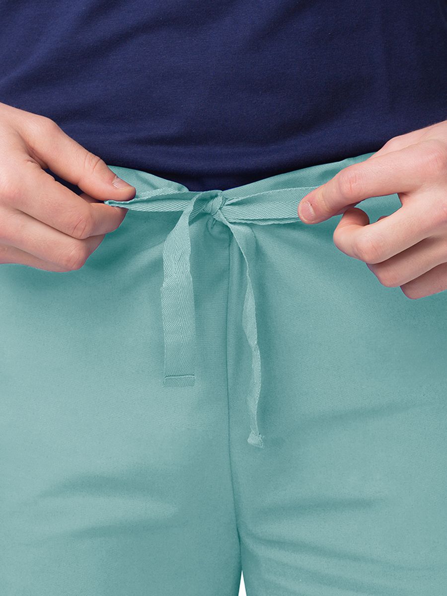 Unisex fit, natural-rise, tapered-leg pants. It's a modern version of a longstanding tradition. Features right leg patch pocket, back hip pocket, and flat woven tape drawstring. Regular inseam: 31". Petite inseam: 28.5". Tall inseam: 33.5".